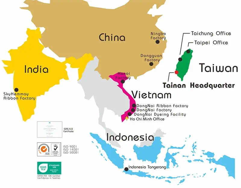 Headquartered in Taiwan, Junmay Label (JML) is a leading manufacturer specializing in innovative jacquard fabrics, woven labels, printed labels, woven patches, and customized jacquard components. We offer a wide range of sustainable yarn options and advanced structural engineering solutions tailored to meet our clients' designs.