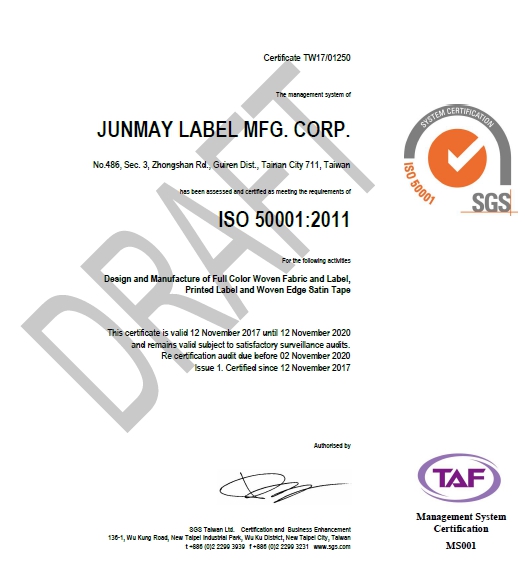 在同仁經過數月的努力下,成為台灣第一,且是唯一通過ISO 50001能源管理系統認證的商標製造商。